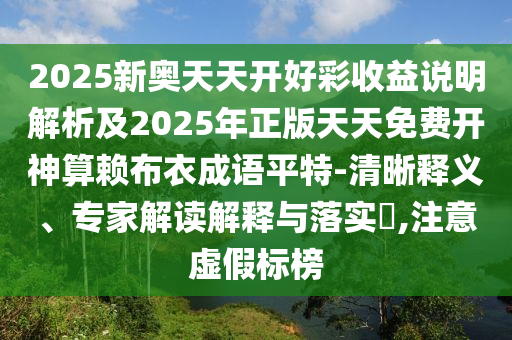 2025新奧天天開好彩收益說明解析”及“2025年正版天天免費(fèi)開神算賴布衣成語平特清晰釋義”的專家解讀與落實(shí),避免虛假標(biāo)榜