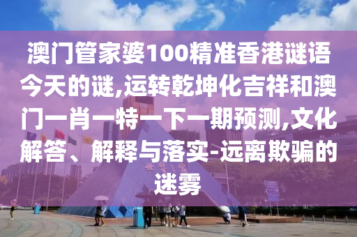 澳門管家婆100精準(zhǔn)香港謎語今天的謎,運轉(zhuǎn)乾坤化吉祥和澳門一肖一特一下一期預(yù)測,文化解答、解釋與落實-遠離欺騙的迷霧