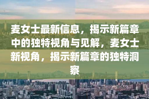 隨著時(shí)代的發(fā)展,麥女士作為公眾人物備受關(guān)注,本文將結(jié)合最新信息,以新聞報(bào)道的視角揭示麥女士的新篇章,并融入自己的見解,帶您了解她的最新動(dòng)態(tài)。