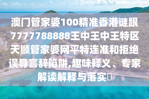 澳門管家婆100精準(zhǔn)香港謎跟7777788888王中王中王特區(qū)天順管家婆網(wǎng)平特連準(zhǔn)和拒絕誤導(dǎo)言辭陷阱,趣味釋義、專家解讀解釋與落實(shí)?