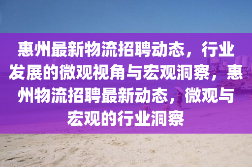 惠州市的物流行業(yè)迎來了一股招聘熱潮,隨著電子商務(wù)的快速發(fā)展和全球化貿(mào)易的不斷深化,物流行業(yè)正逐漸成為支撐城市經(jīng)濟(jì)發(fā)展的重要力量,本文將結(jié)合事實(shí)依據(jù),以新聞報(bào)道的視角對惠州最新物流招聘進(jìn)行深入剖析,同時(shí)融入自己的觀點(diǎn)和見解。