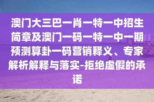 澳門大三巴一肖一特一中招生簡章及澳門一碼一特一中一期預測算卦一碼營銷釋義、專家解析解釋與落實-拒絕虛假的承諾