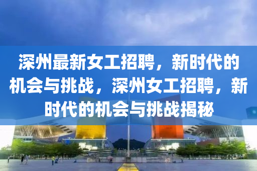 深州市各大企業(yè)紛紛發(fā)布最新女工招聘信息,為廣大女性求職者提供了更多的就業(yè)機會,這一舉措不僅反映了深州市經(jīng)濟發(fā)展的活力,也體現(xiàn)了對女性勞動力的重視與尊重,本文將結合事實依據(jù),從新聞報道的視角出發(fā),探討深州最新女工招聘的現(xiàn)象及其背后的意義。