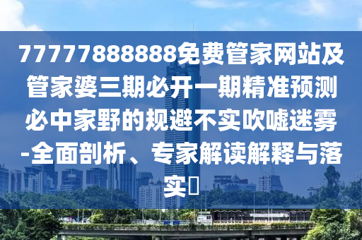 77777888888免費(fèi)管家網(wǎng)站”及“管家婆三期必開一期精準(zhǔn)預(yù)測(cè)必中家野”的全面剖析、專家解讀解釋與落實(shí)——規(guī)避不實(shí)吹噓迷霧