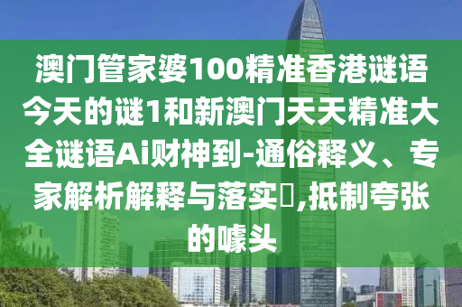 澳門管家婆100精準(zhǔn)香港謎語今天的謎1和新澳門天天精準(zhǔn)大全謎語Ai財(cái)神到-通俗釋義、專家解析解釋與落實(shí)?,抵制夸張的噱頭