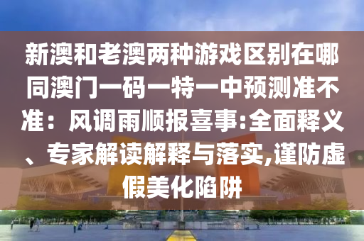 關(guān)于新澳和老澳兩種游戲的區(qū)別、澳門一碼一特一中預(yù)測的準(zhǔn)確性,以及“風(fēng)調(diào)雨順報(bào)喜事”的全面釋義、專家解讀與落實(shí),還有對虛假宣傳的警惕,下面將進(jìn)行詳細(xì)闡述。