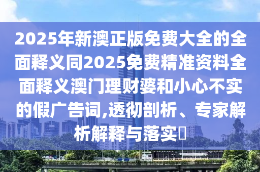 2025年新澳正版免費(fèi)大全的全面釋義同2025免費(fèi)精準(zhǔn)資料全面釋義澳門理財(cái)婆和小心不實(shí)的假廣告詞,透徹剖析、專家解析解釋與落實(shí)?