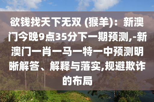 欲錢找天下無雙 (猴羊):新澳門今晚9點35分下一期預測,-新澳門一肖一馬一特一中預測:明晰解答、解釋與落實