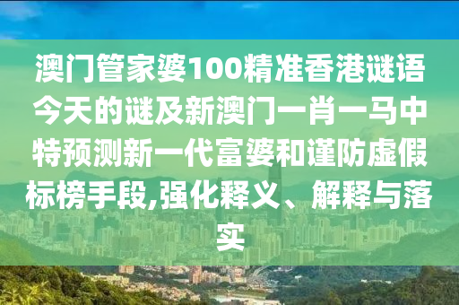 澳門管家婆100精準(zhǔn)香港謎語今天的謎及新澳門一肖一馬中特預(yù)測新一代富婆的強(qiáng)化釋義、解釋與落實(shí)
