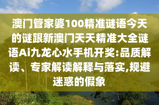 澳門管家婆100精準(zhǔn)謎語今天的謎跟新澳門天天精準(zhǔn)大全謎語Ai九龍心水手機(jī)開獎:品質(zhì)解讀、專家解讀解釋與落實,規(guī)避迷惑的假象