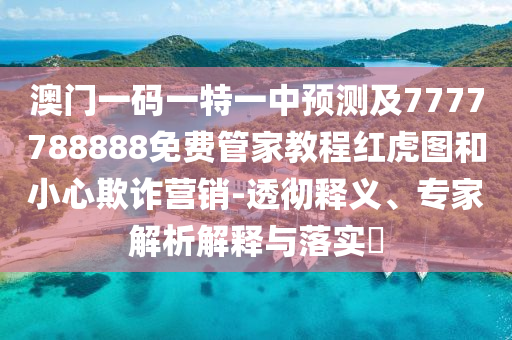 關于澳門一碼一特一中預測及7777788888免費管家教程紅虎圖的透徹釋義、專家解析解釋與落實,我們需要謹慎對待,以防陷入欺詐營銷的陷阱。