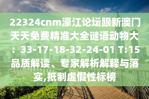 22324cnm濠江論壇跟新澳門天天免費(fèi)精準(zhǔn)大全謎語動(dòng)物大:33-17-18-32-24-01 T:15:品質(zhì)解讀、專家解析解釋與落實(shí)