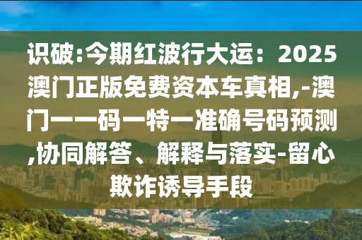 今期紅波行大運:2025澳門正版免費資本車真相,-澳門一一碼一特一準確號碼預測:協(xié)同解答、解釋與落實